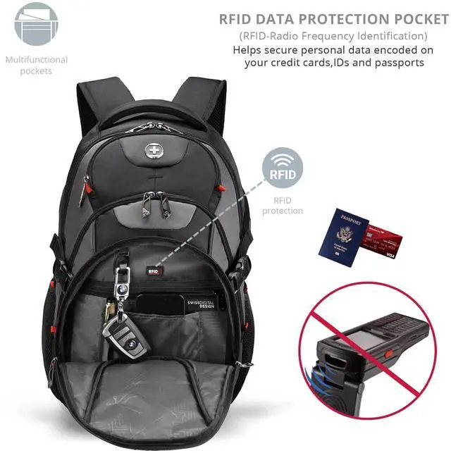 SAFEGUARD YOUR PRIVACY WITH AN INTEGRATED RFID PROTECTION POCKET: Travel without worries. The RFID protection compartment protects your personal data from being accessed by RFID scanners (e.g. credit cards, passports and driver's licenses).