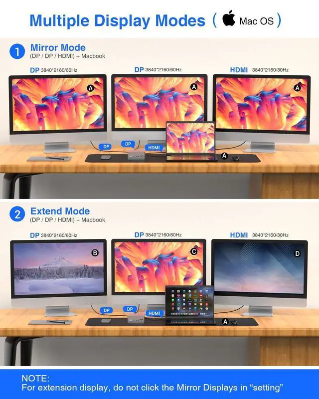 USB C Docking Station Triple Display: TOTU Docking Station is compatible with macOS & Windows systems. With up to three additional displays via 2 DP&1 HDMI and up to 60W of charging power. Utilizes USB 3.1 in connection with the latest features of TOTU Triple Display Docking Station.