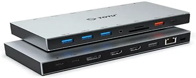 Multifunctional 15-in-1 docking station: TOTU docking station comes with the features you need in your daily life and work, 1 Type-C Host port, 2 HDMI, 1 DP, 1 USB-C 3.1, 1 USB A 3.1, Type-C PD 3.0, 3 USB 3.0, 1 USB 2.0, Gigabit Ethernet, SD&TF card reader and 3.5 mm audio/microphone port. This not only can provides stable multi-port connection, but also facilitates work for greater efficiency.