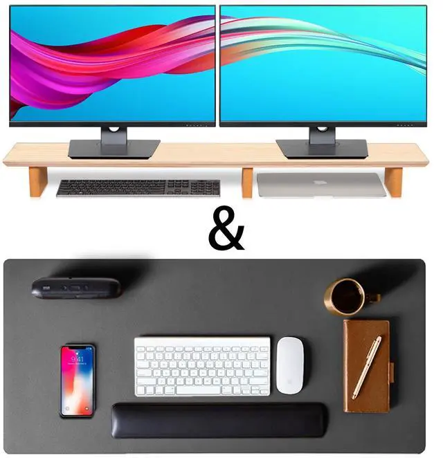 High Quality: This desktop Stand is made of 12-ply superior composite hardwood plywood together with premium cork, which is robust, durable, non-sliop and won't hurt the desktop. And its simple structure is easy to install.