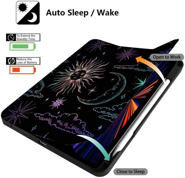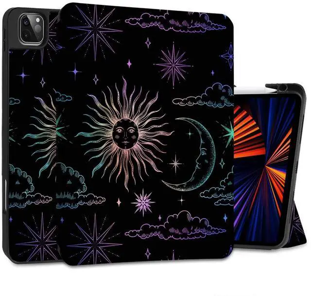 DONGKE Case for iPad Pro 12.9 inch 6th Generation 2022, Built-in Pencil Holder + Trifold Stand + Auto Wake/Sleep + Protective Cover for iPad Pro 12.9 5th/4th/3rd Gen - Sun & Moon