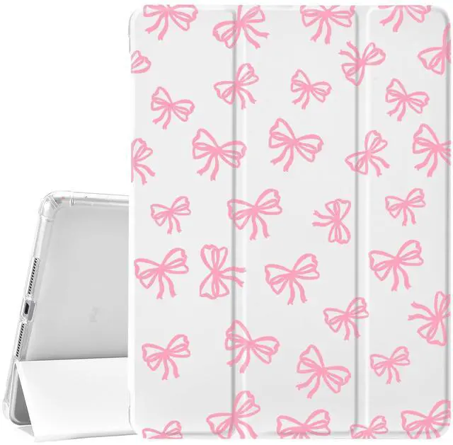 JOYLAND Girly Bow Pad Case for iPad 5th/6th Generation - White With Pencil Holder, Auto Wake/Sleep, Anti-Scratch Shockproof Premium Folio Stand for iPad 9.7 Inch