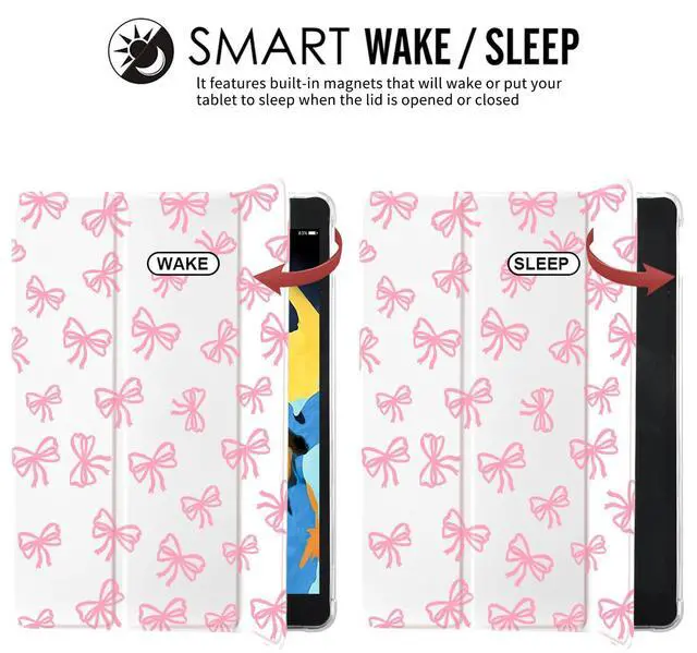 [Reliable Auto Sleep/Wake & Tri-Fold] Built-in magnetic strip provides auto sleep/wake feature with easy snap on and off. The tri-fold front cover can support pad in two standing position for viewing and typing.