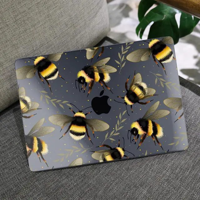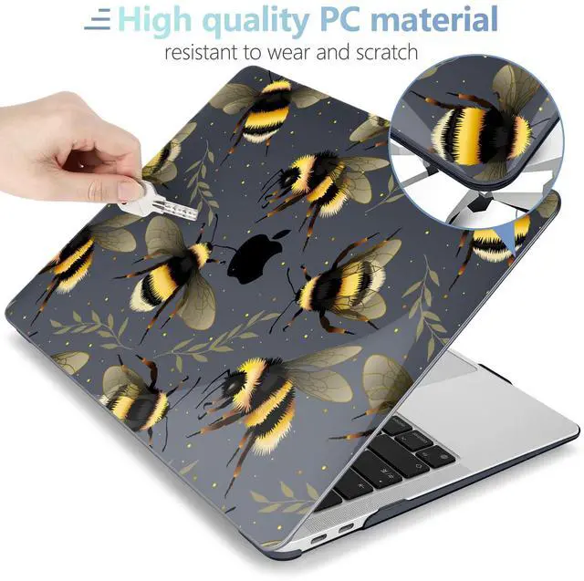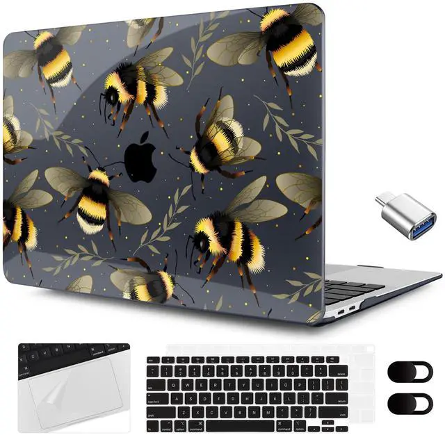 MEEgoodo for MacBook Air 13.3 inch Case 2021 2020 2019 2018 A2337 M1 A2179 A1932, Laptop Shell with Keyboard Webcam Cover & Trackpad Film & Type C Adapter for MacBook Air M1, Bumblebee & Leaves