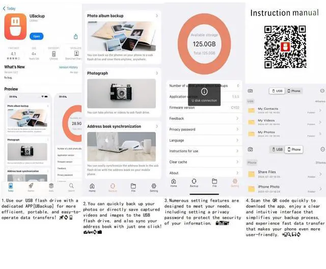 4-in-1 Multi-Interface Storage Solution:This data stick features a versatile four-in-one connector: iOS port (for models 16 or earlier), USB 3.0 interface, Android Type-C, and Micro USB. Compatible with various devices such as smartphones, PCs, laptops, tablets, and Android gadgets. Note: iOS devices require the "UBackup" app for operation. Android devices do not need additional software but must support OTG functionality.