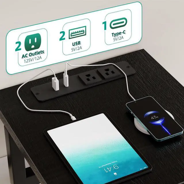 Portable Charging Port: This dual monitor stand has a built-in 3-in-1 power outlet that includes two AC power outlets, a USB port and a Type-C port. You can connect printers, shredders, headphones, tablets and other devices to one place for easy power connection and charging