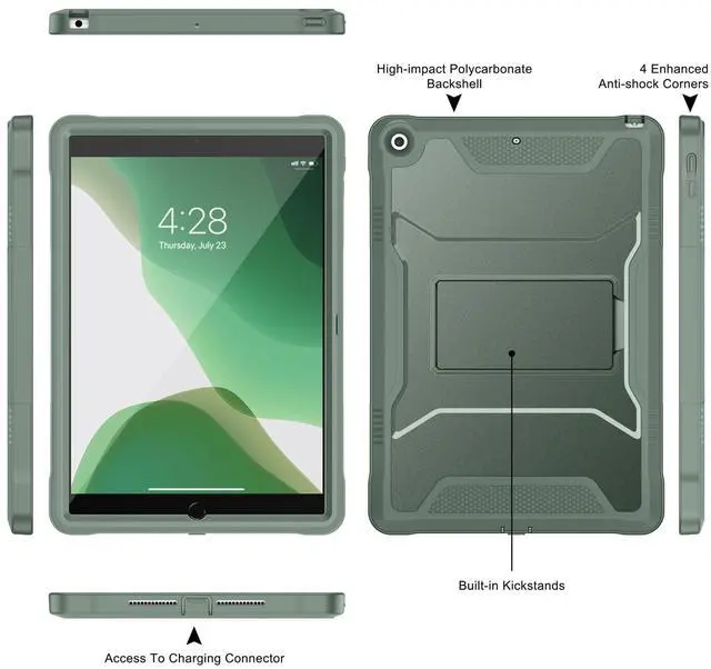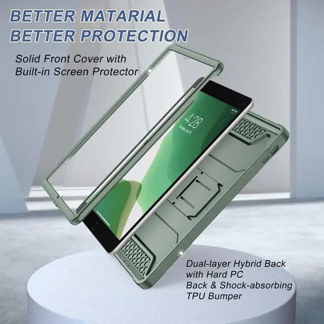 Soke Case for iPad 9th/8th/7th Generation 10.2-Inch (2021/2020/2019 Release), with Built-in Screen Protector and Kickstand, Rugged Full Body Protective Cover for Apple iPad 10.2 Inch - Calke Green