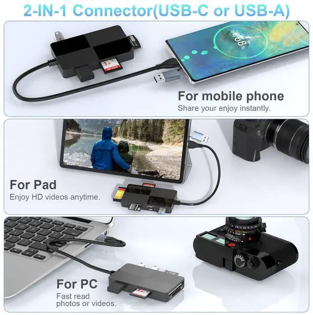 ^^ 2-in-1 Design: Features USB-C and USB 3.0 connectors for easy access to laptops, tablets, and smartphones via USB-A or USB-C slots; plug-and-play compatible with Mac OS, Android, Linux, Chrome OS, and Windows XP/Vista/7/8/10/11 ^^ 5Gbps