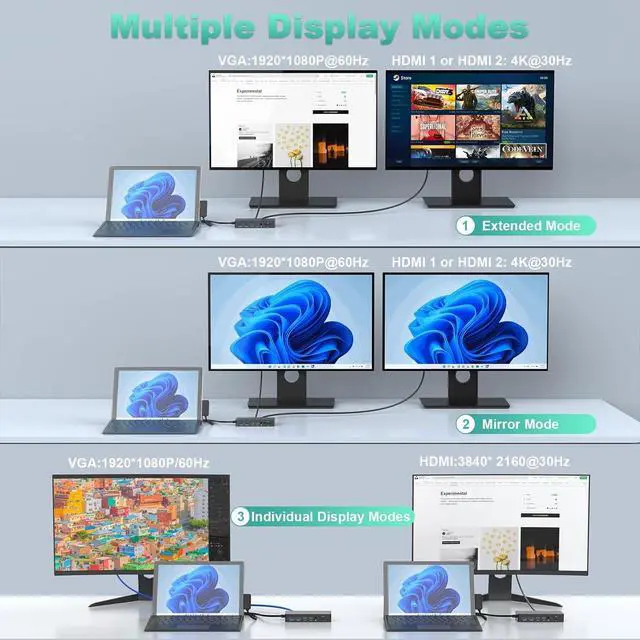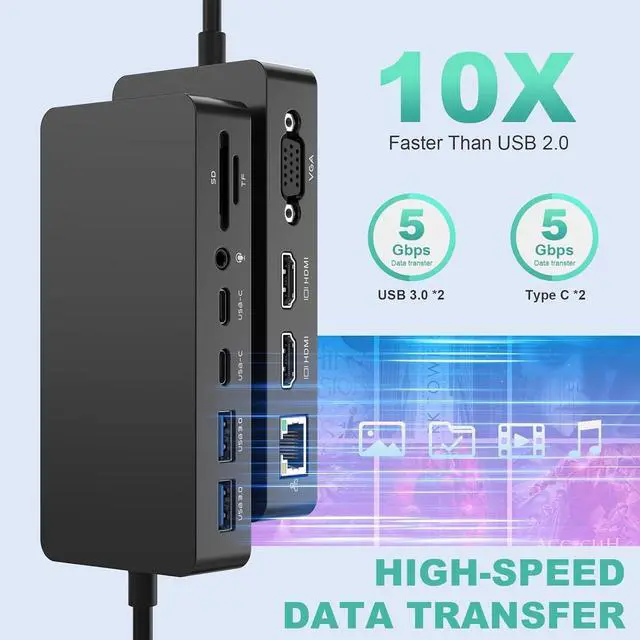 The latest docking station up to 72 watts of charging, and a DC15V input for fast device charging. The dock makes working more productive. ^^ Ultra HD 4K HDMI output & Triple Displays Docking Stationtriple display (HDMI/HDMI/VGA ) with extended or mirrored mode for up to 3x greater efficiency. laptop docking station 4K HDMI supports resolutions up to 3840 x 2160@60Hz. VGA port supports display resolutions up to 1920 x 1080@60Hz.