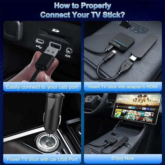 Youtube tv adapter with USBC-C and USBC-A cables for perfect compatibility with USB and USB-C car ports. ^^ Easy Set up and Stable ConnectionThe car tv converter for tv stick adapter is plug-and-play, no apps to install. Simply connect the car tv mate and wireless car play to your car and plug in your entertainment device. With an upgraded chip built into the adapter for superior streaming, carplay hdmi adapter ensures a smooth, lag-free entertainment experience that's perfect for uninterrupted viewing and gaming in the car. ^^ Wireless CarPlay AdapterSeamlessly convert from wired to wireless CarPlay! Say goodbye to tangled wires and enjoy a neater, more comfortable driving experience.