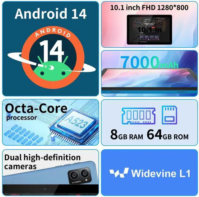 Powerful Performance with Android 14 & 8GB RAM + 64GB Storage: Unlock exceptional performance with the Android 14 OS, powered by a octa-core processor. With 8GB RAM and 64GB internal storage, plus expandable memory support up to 1TB via SD card, this tablet ensures swift multitasking, fast app launches, and ample space for all your apps, photos, and media. Ideal for work, entertainment, and learning on-the-go