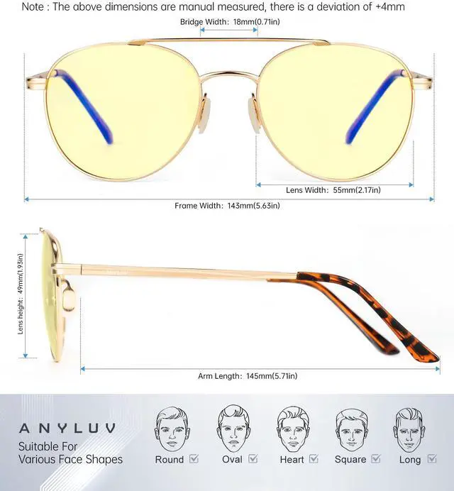 Stylish Design: This stylish womens blue light glasses blend fashionable design with practical functionality, featuring a distinctive double-bridge frame that exudes a sense of modern elegance. The bluelight glasses are adorned with the ANYLUV l