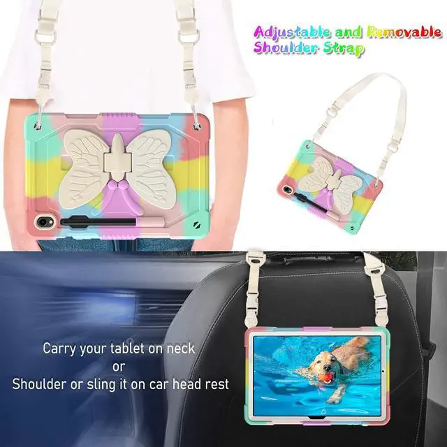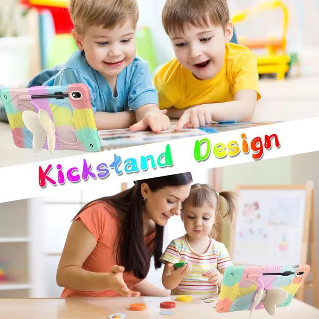 Butterfly Kids Case for Galaxy Tab S9 FE / S9 has a built-in double sturdy kickstand on the back, the double kickstand is designed for multi-angle watching. Fits every occasion, when doing yoga, cooking, climbing, watching, working, trips, etc. Full access to all features (Cameras, Speakers, Ports, and Buttons) without removing the tablet case