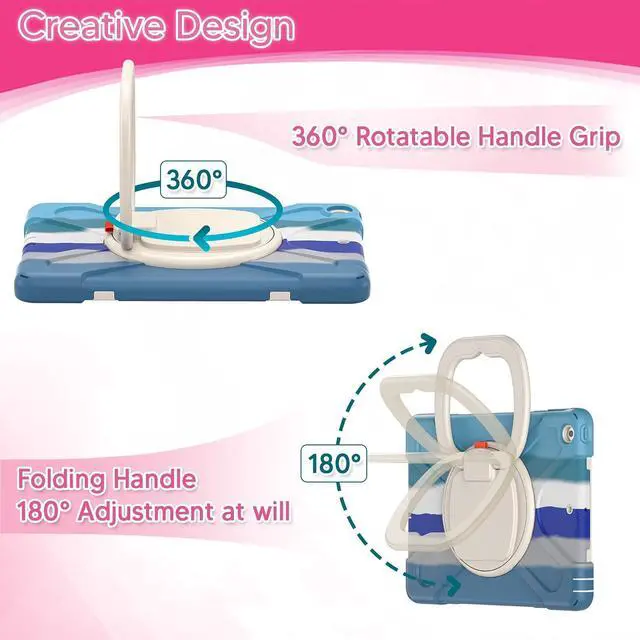 Hands-Free Viewing Stand - Ideal for travel, home, school, and work use our tablet protector features a 360deg rotating handle that also folds 180deg to give you multiple viewing angles. Great for enjoying movies, playing games, and real-time video chats.