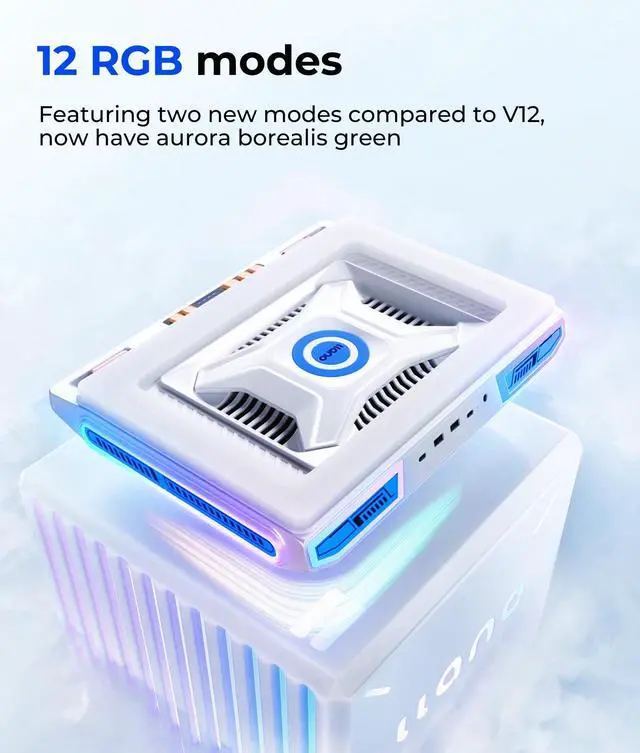^^ VIBRANT RGB MODES: Featuring 5 colors with constant and alternating flash options, V10 pro stand cooler offers up to 12 dynamic RGB modes. The built-in memory function automatically restores your last color setting, providing a stunning and immersive gaming atmosphere for every gamer.