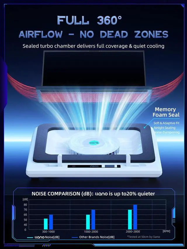 ^^ [Advanced Dust Protection]: Protect your laptop with our dust filter and specially designed structure. The llano PC gaming computer laptop cooler acts as a shield against dust intrusion, significantly extending your device's lifespan. Each package includes an extra dust filter for added convenience. ^^ [Smart