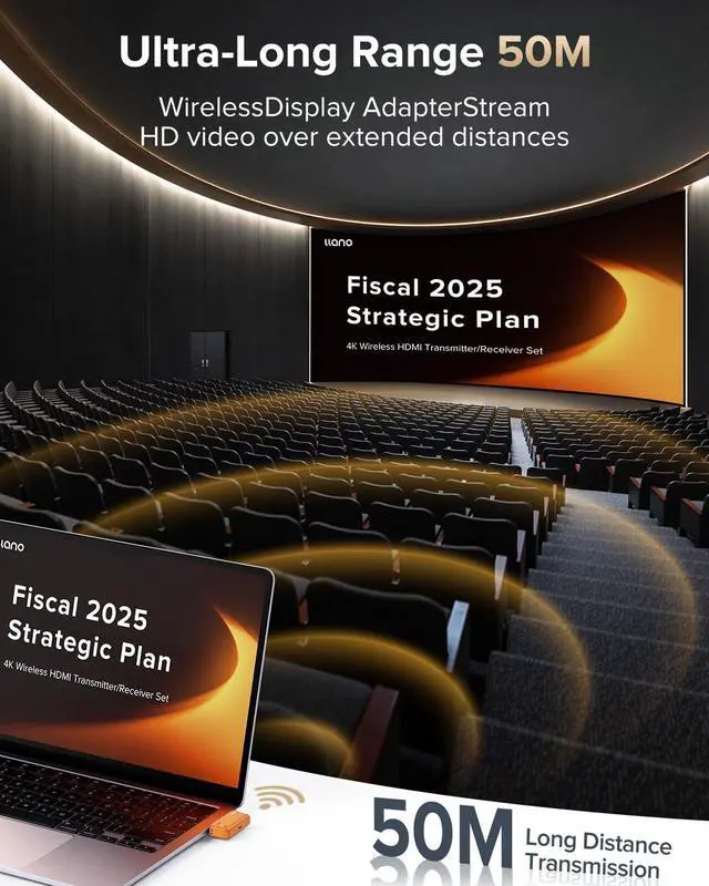 Receiver: Plug and play, the Wireless HDMI Transmitter and Receiver offers true plug-and-play functionality without the need for messy cables, Wi-Fi, apps, Bluetooth or complicated setup. Bluetooth HDMI easily connects to devices in seconds, while llano Wireless HDMI technology ensures zero latency for smoother operation and a tidy workspace while delivering seamless, high-quality streaming. ^^ llano