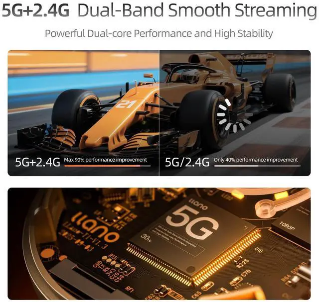 llano T1 HDMI Ultra HD Picture Quality: Our wireless HDMI display dongle adapter supports 1080P decoding and delivers an impressive 1080P Full HD output. Seamlessly switch to a larger screen and enjoy high-definition visuals for learning, meetings, family gatherings, and gaming. ^^ Latest Upgrade to Our