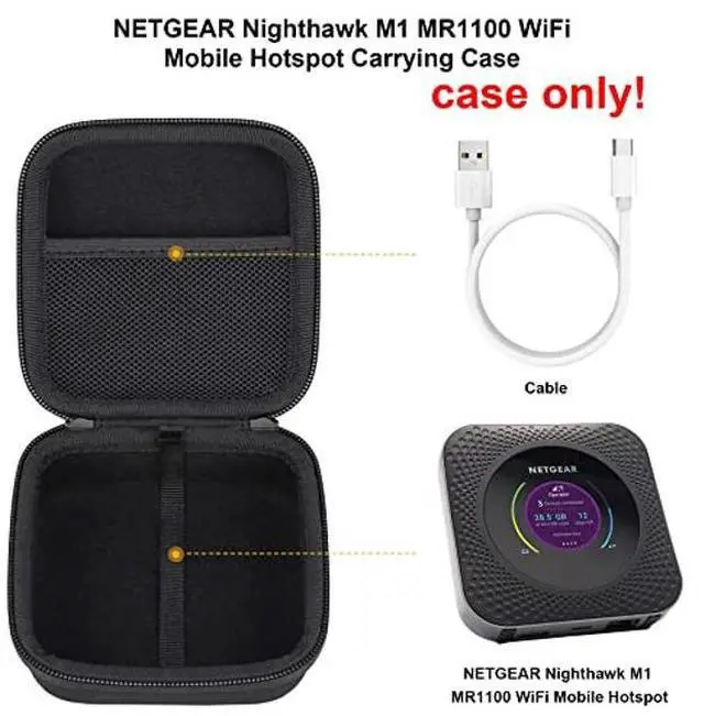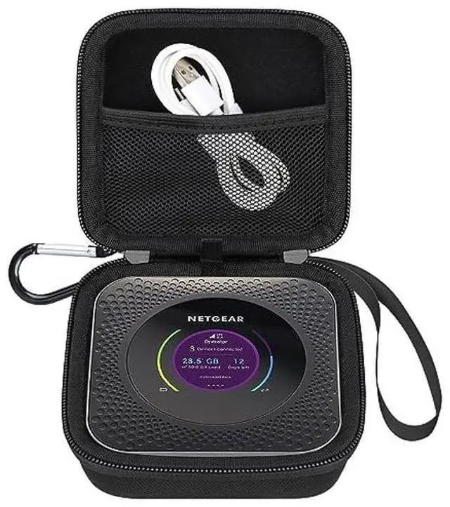 The lightweight NETGEAR nighthawk WiFi mobile hotspot storage case is designed with a tongue strap interior to help lift the mobile hotspot router out of the case, easy to get your WiFi mobile hotspot when you need it. this hard NETGEAR Nighthawk M1 4G LTE WiFi mobile hotspot