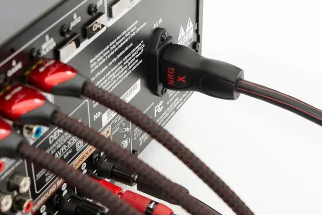 NRG-X3 AC Power Cables feature direction-controlled Semi-Solid Concentric Long-Grain Copper (LGC) conductors, minimizing the noise of your A/V system.