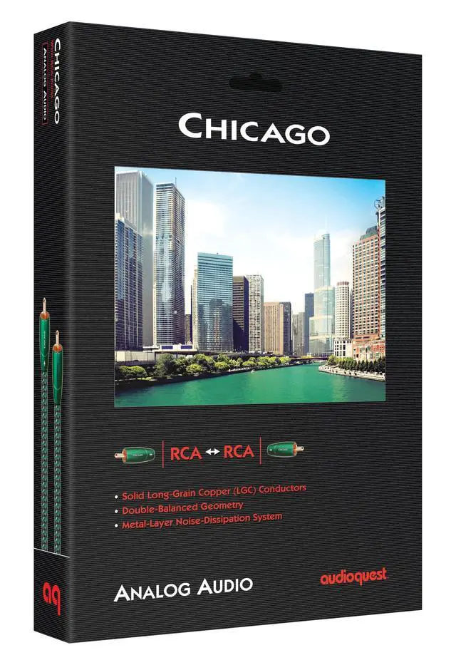 Analog Audio Interconnect Cable: Connect audio source components to amplifiers and receivers with this AudioQuest Chicago RCA analog-audio cable, meticulously designed for exceptional performance and outstanding value. Solid Long-Grain Copper (LGC) conductors minimize distortion, Foamed-Polyethylene insulation preserves dynamic contrasts, and a Metal-Layer Noise-Dissipation efficiently dissipates high-frequency noise. The result is cleaner, clearer, more naturally beautiful music.