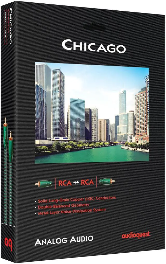 Analog Audio Interconnect Cable: Connect audio source components to amplifiers and receivers with this AudioQuest Chicago RCA analog-audio cable, meticulously designed for exceptional performance and outstanding value. Solid Long-Grain Copper (LGC) conductors minimize distortion, Foamed-Polyethylene insulation preserves dynamic contrasts, and a Metal-Layer Noise-Dissipation efficiently dissipates high-frequency noise. The result is cleaner, clearer, more naturally beautiful music.