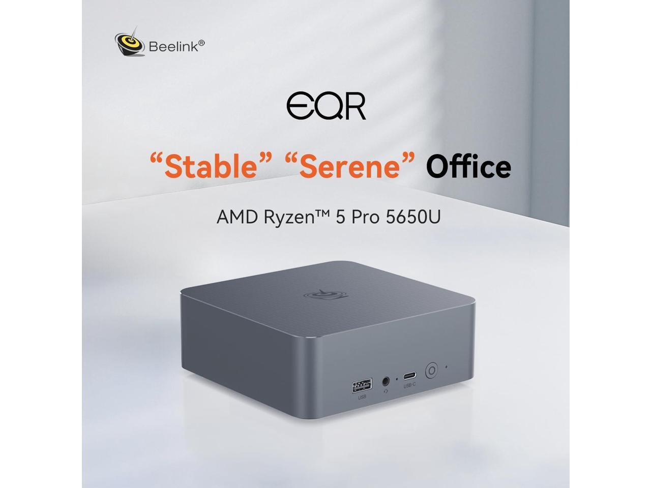 - [(POWERFUL PERFORMANCE)] Beelink EQR5 ryzen mini pc equips with 6-core/12-thread AMD Ryzen 5 5650U(up to 4.2GHz), The base frequency is 2.3GHz / the dynamic frequency can reach 4.2GHz. Beelink mini pc ryzen is a robust hub for your every work need. Beelink micro pc excellent in Heat Fins, Heat Pipe and 1 fan designed makes it excellent in texture, durable and keeps its cool, standby for a day without getting hot.