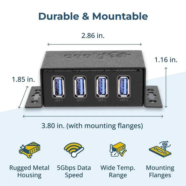 ^^ POWERED DEVICE: Supports self-powered mode with a 5V DC input jack, provides 900ma per port while in data + power mode, Utilizing an integrated GL3510 chipset which allows this 3.1 USB hub to support fast charging speeds of 2.4A. ^^ WHY COOLGEAR? Your Trusted Partner based in the USA, Providing Advanced Engineering, Highly Reliable and Superior Built Products to handle the most demanding industries for over 20 years. Reach out to us for CAD, Mechanical Drawings and, Data Sheets.