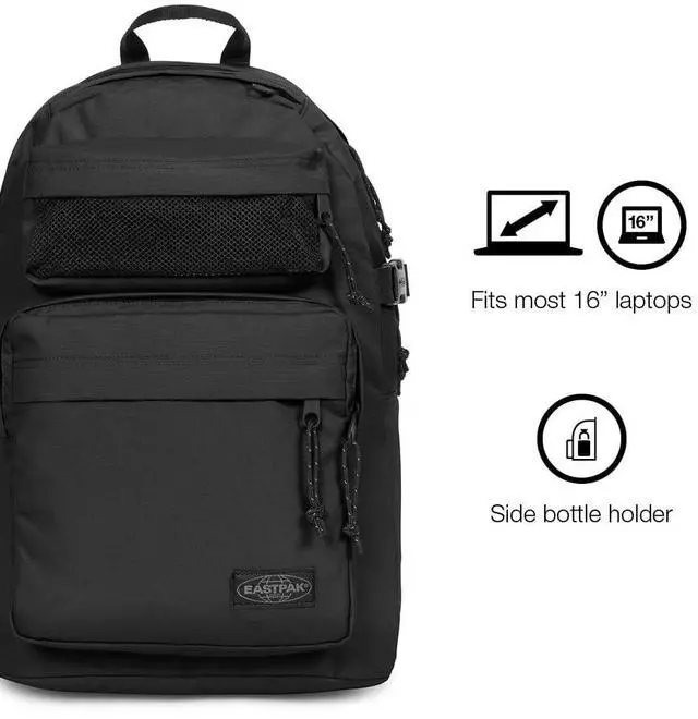 Designed for performance and everyday utility, the Double Pro by Eastpak is a high-capacity backpack built for those who need more from their daily carry. Featuring two roomy main compartments and two easy-access front zippered pockets, this 32L backpack keeps your gear organized and accessible. The padded laptop sleeve fits most 16-inch devices, while a fleece-lined phone pocket protects your tech in transit. For added convenience and comfort, the Double Pro includes padded shoulder straps, a supportive back panel, and compression straps to manage heavy loads. A discreet zippered security pocket on the back keeps valuables close, and the side drink bottle holder ensures you stay refreshed throughout the day.