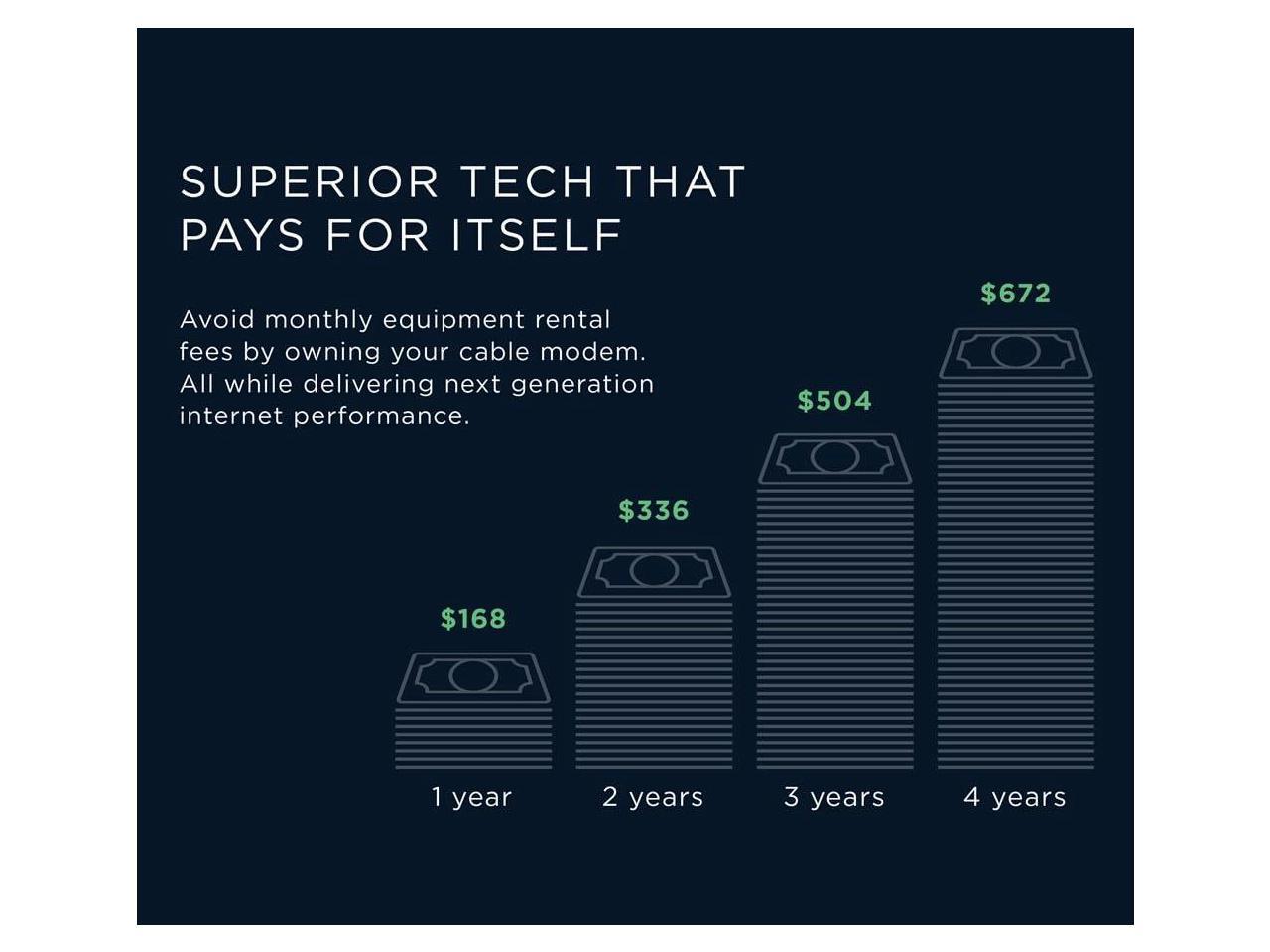 - Superior next generation technology but pays for itself. Owning your own modem eliminates up to $168 per year in monthly rental charges.