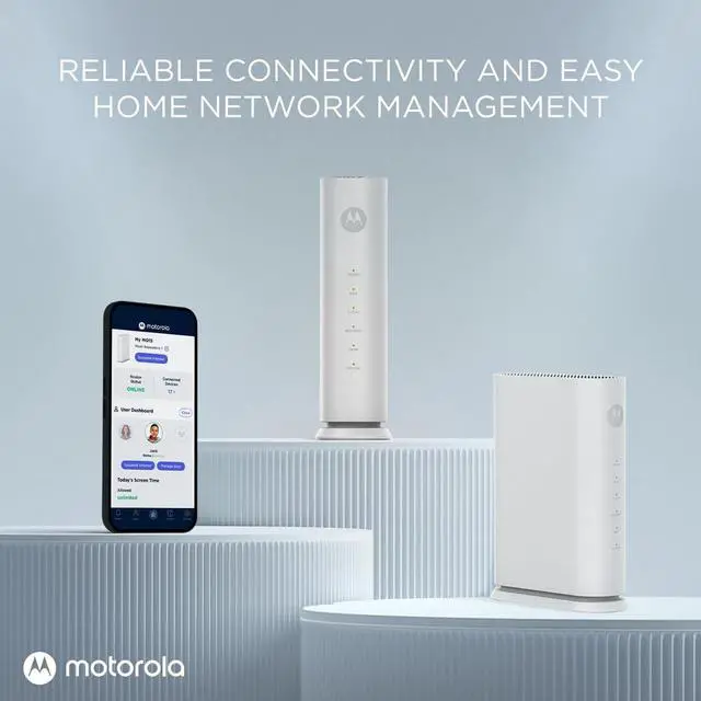 Ultra-Fast Wi-Fi 7 Speeds Dual-band performance up to 3.6 Gbps keeps streaming, gaming, and smart devices running smoothly without lag. ^^ Whole-Home Coverage Powerful antennas deliver reliable Wi-Fi across up to 2, 000 sq. ft. per unit, with EasyMesh support to expand coverage as needed. ^^ MotoSync+ Next-Gen Security & Parental Controls Protect your family with premium features, including advanced content filtering, device-level profiles, and real-time threat protection. ^^ Seamless Device Management Simple setup and intuitive app controls let you monitor, manage, and secure your home network in minutes.