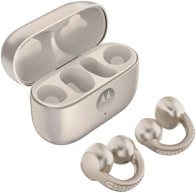 Stay in the moment with moto buds loop. Enjoy all-day comfort with an open-ear design, sleek style, and crystal-clear calls. Powered by Sound by Bose and built with a water-repellent design*****, moto buds loop keeps you connected, in control, and ready for anything.