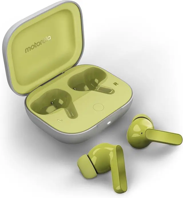 Experience exceptional sound quality with the Motorola Moto Buds XT2441-1 Dinamic ANC. These true wireless earbuds feature Triple Mic Array technology for clear voice pickup and Bluetooth 5.3 for seamless connectivity. With Active Noise Cancellation (ANC) and Dolby Atmos-Sound, you'll enjoy immersive audio that blocks out external noise. The IP54 rating ensures water and dust resistance, making them ideal for active lifestyles. Lightweight and comfortable. Elevate your audio experience with the Motorola Moto Buds XT2441-1.