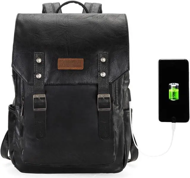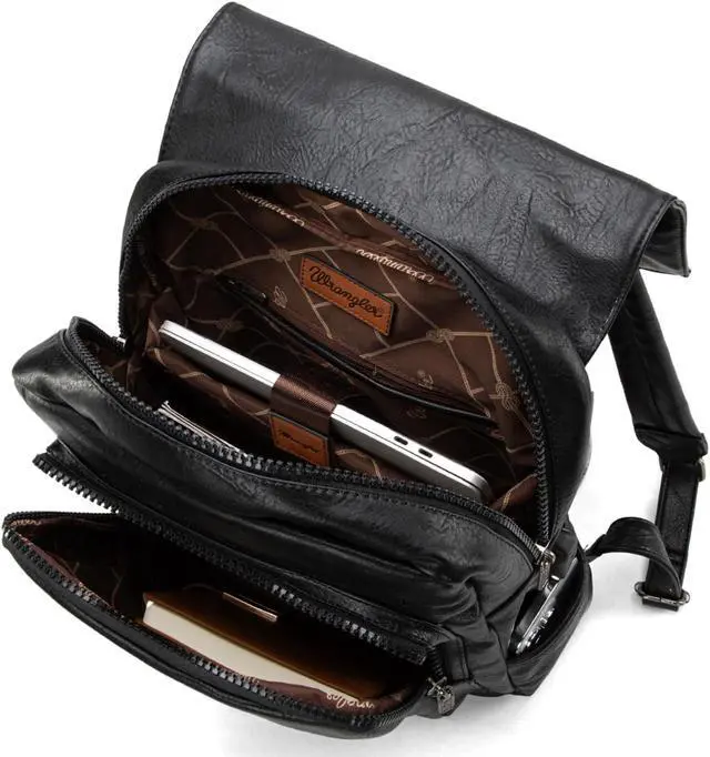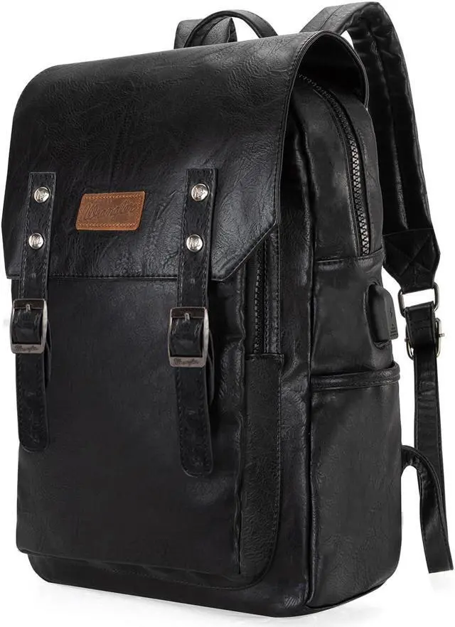 Montana West x Wrangler Black Leather Backpack for Women Laptop Backpack for Men Unisex Fashion Backpack Purse