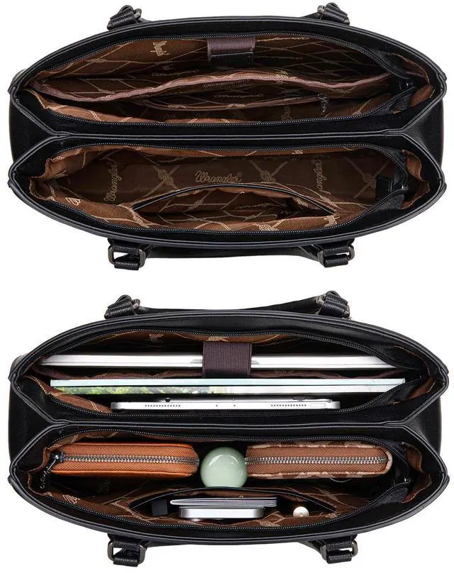 Wrangler Whipstitch Tote Bag for Women Fall Purses and Handbags Double Compartment Work Medium Size Black WG387-8119BK
