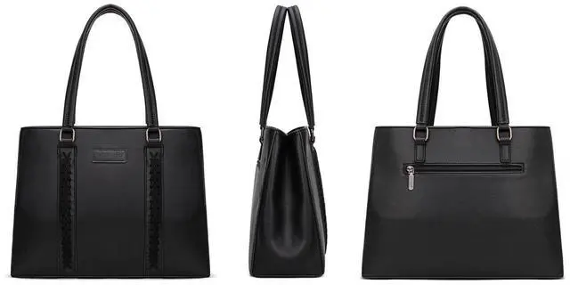 Work bag has a structured and sturdy silhouette, measures 14"L x 11"W x 5"H (9" drop) and can fit a laptop up to 13.5".