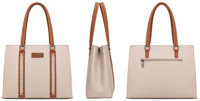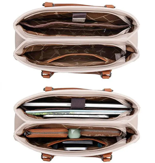 Wrangler Whipstitch Tote Bag for Women Fall Purses and Handbags Double Compartment Work Medium Size Tan WG387-8119BR-TN