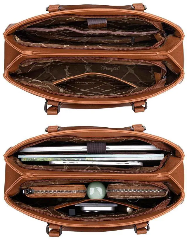 Wrangler Whipstitch Tote Bag for Women Fall Purses and Handbags Double Compartment Work Medium Size Brown WG387-8119BR