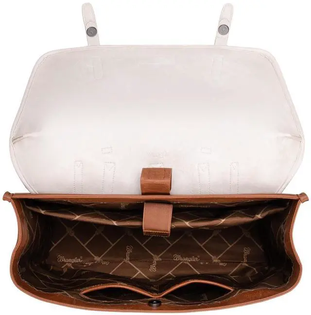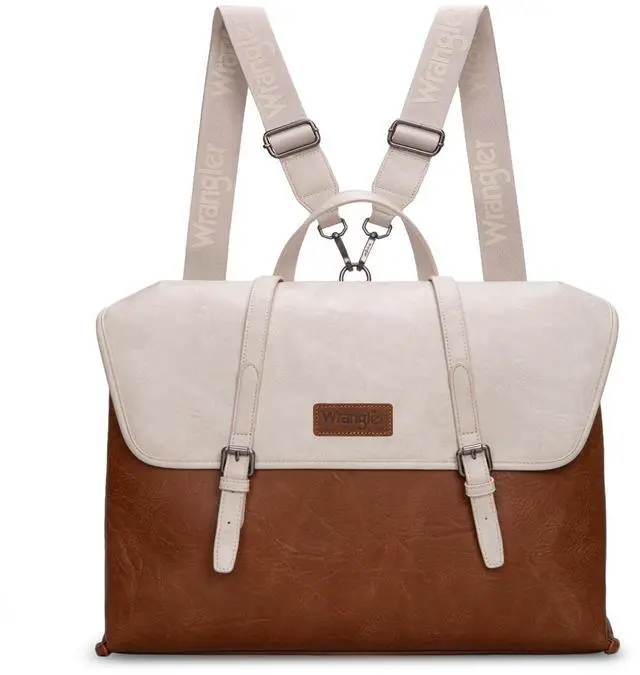 Equipped with a convenient trolley strap on the back, this work bag can be securely fastened to your luggage, simplifying your travels and making it more enjoyable. The padded laptop compartment offers a safe and separate space for your device, protecting it from bumps and shocks so you can focus on what matters most. Crafted from lightweight leather, the Wrangler Backpack is available in three timeless colors: black, coffee, and beige. Whether you're heading to the office, class, or a weekend getaway, this medium-sized messenger bag combines fashion with functionality, making it an essential addition to your collection of office accessories and travel gear. Elevate your style and experience unparalleled convenience with the Wrangler Backpack where fashion meets practicality.
