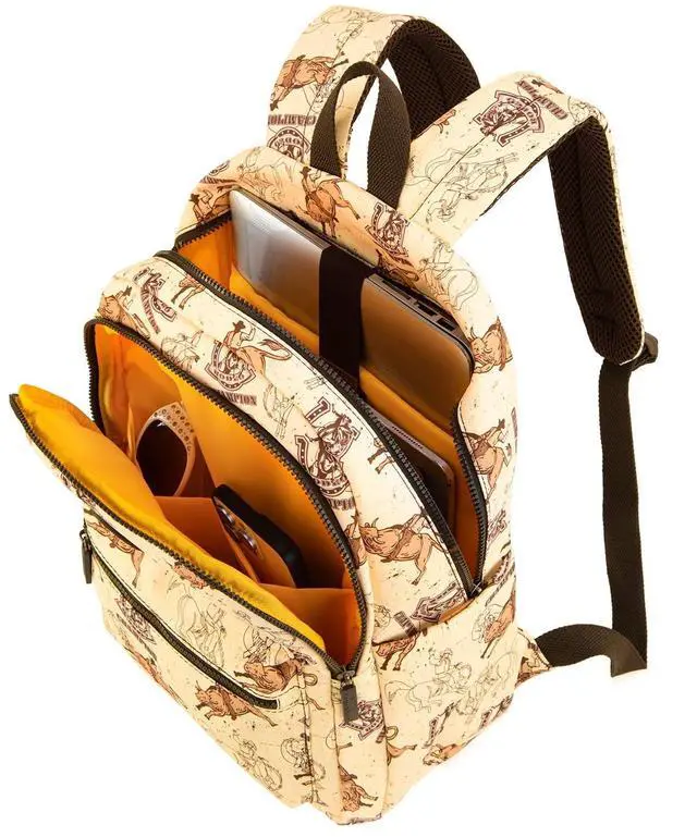 Large Capacity: 2 front pockets, 1 main double zip pocket, 1 back zip pocket, 2 side pockets. The novelty backpack is roomy enough to fit a 15" laptop ^^