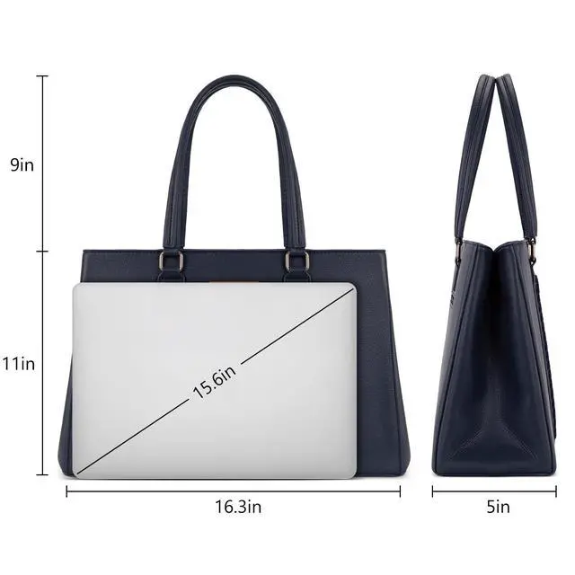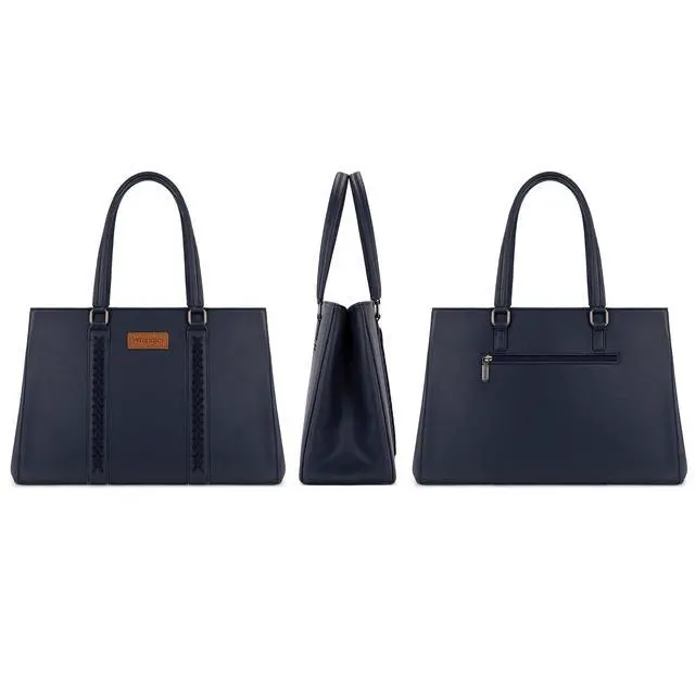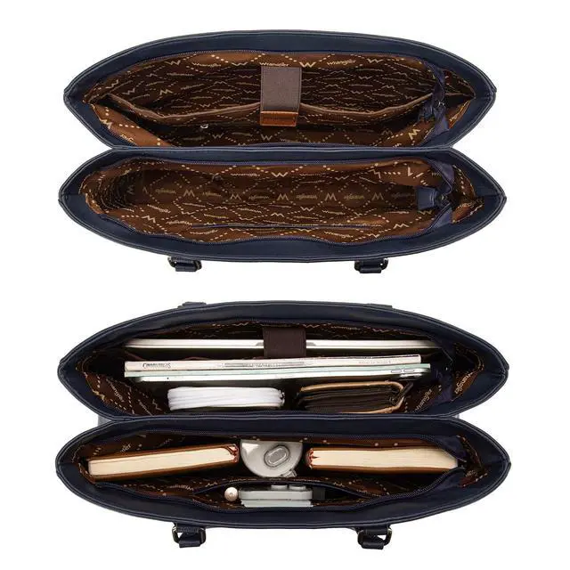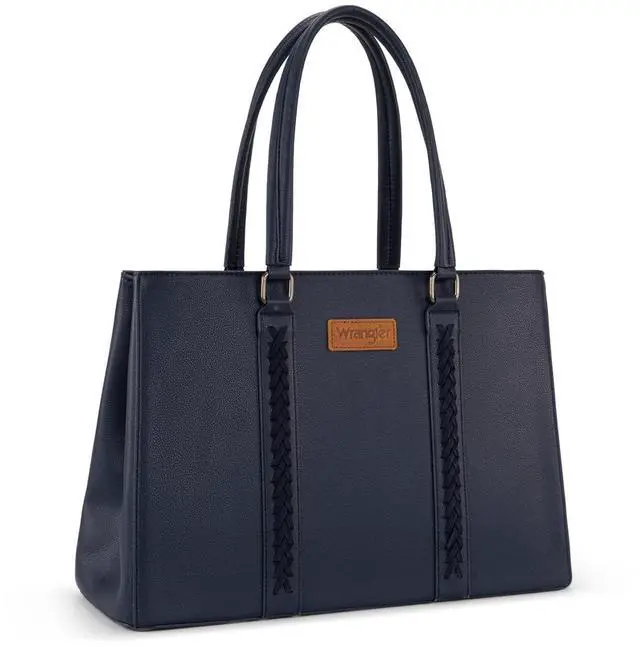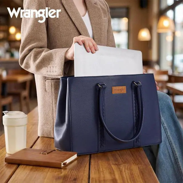 Versatile yet stylish, Wrangler laptop tote bag is the perfect everyday work companion. ^^ This work tote bag measures 16"L x 5"W x 11"H. Fits a laptop up to 15.6". ^^ Designed with a wide profile and dual-compartment structure, this womens laptop purse is spacious and organized. ^^ This computer bag includes fully padded compartments for both your laptop and tablet, ensuring reliable protection on the go. ^^ A functional carryall tote bag that also makes a practical gift in your life.