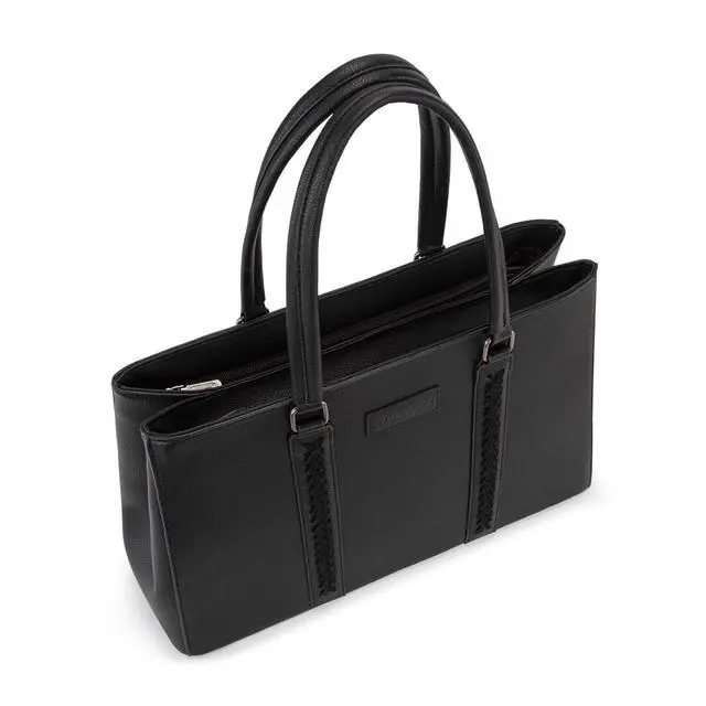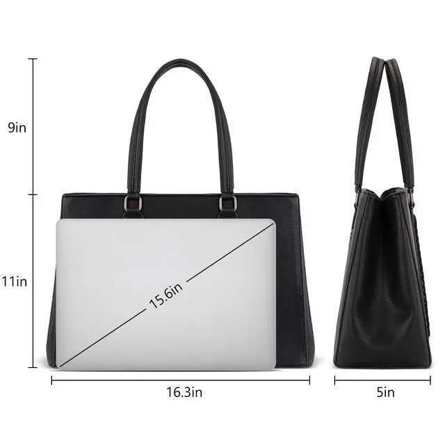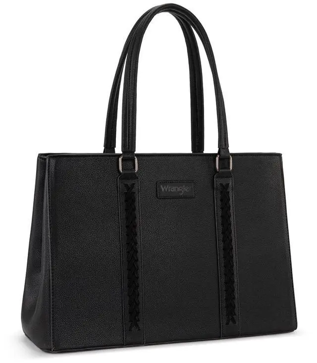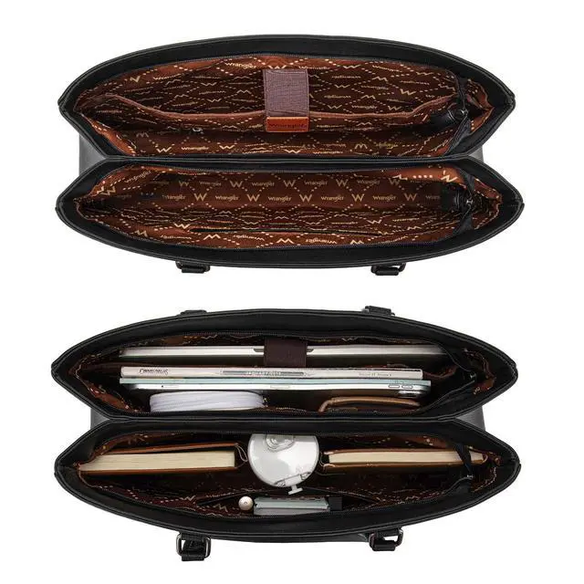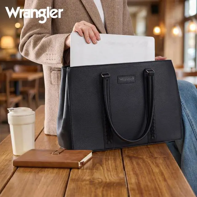 Versatile yet stylish, Wrangler laptop tote bag is the perfect everyday work companion. ^^ This work tote bag measures 16"L x 5"W x 11"H. Fits a laptop up to 15.6". ^^ Designed with a wide profile and dual-compartment structure, this womens laptop purse is spacious and organized. ^^ This computer bag includes fully padded compartments for both your laptop and tablet, ensuring reliable protection on the go. ^^ A functional carryall tote bag that also makes a practical gift in your life.