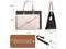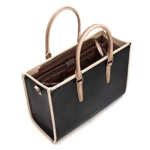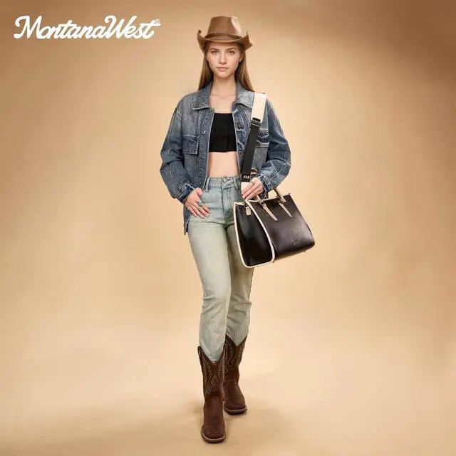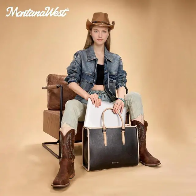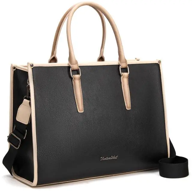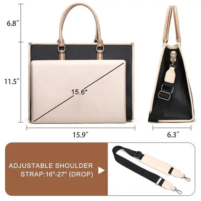 DescriptionThis sophisticated Montana West laptop tote bag seamlessly blends professional style with practical functionality for the modern working woman. Crafted in Vegan leather with a timeless design, this versatile bag transitions effortlessly from office meetings to business travel. The spacious interior accommodates laptops up to 15.6 inches, making it perfect for professionals who need to carry their technology securely. Measuring 16.5 inches wide, 12.5 inches tall, and 6.5 inches deep, this briefcase-style tote offers ample room for your laptop, documents, and daily essentials. The bag features dual sturdy handles for traditional carrying, plus an adjustable shoulder strap with a 16 to 27 inch drop that allows for comfortable crossbody or shoulder wear.