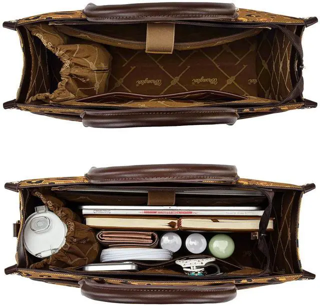 DescriptionIts structured silhouette and versatile design make it the only bag you'll need. Carry it by the top handles for a professional meeting, remove the strap for a chic handbag look, or wear it crossbody for hands-free convenience at the market or on a day out. The Wrangler 3-in-1 Tote isn't just about carrying your thingsit's about carrying your day, with confidence and style. Start your day organized. Securely stash your 15.6 laptop in its padded sleeve, place your 40oz water bottle in its dedicated, leakproof side compartment (no more spills! )