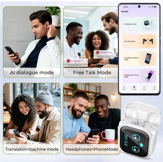 4 in1 FunctionalityCombining translation, music playback, phone calls, and LCD touch screen control in a single device, these AI translation earbuds feature real-time EQ adjustment for sound effects and call noise cancellation, ensuring crystal-clear communication even in noisy environments