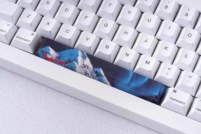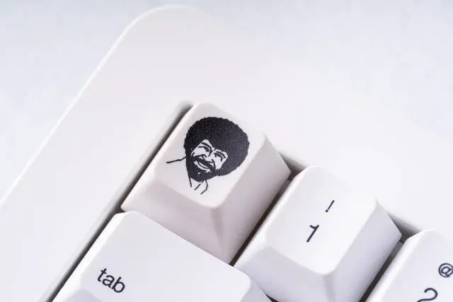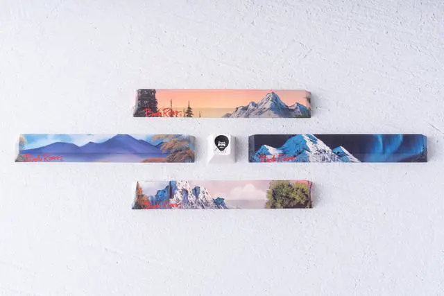 Official Bob Ross Spacebars and Esc key, featuring stunning paintings from The Joy of Painting TV show! Compatible with standard mechanical MX switches. 6.25 u Spacebar is standard size and R1 1u Bob Ross head will match any top row keycap in Cherry profile. Bring serenity and TV history to your desk with these fantastic keycaps, available individually or in a bundle all together!
