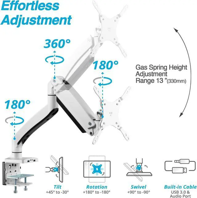 DISCOVER PRODUCTIVE SELF - Two USB 3.0 and AUX ports design to easily connect to your OS. After locking a few screws, the monitor mount instantly improve working posture, increase workspace, and hide cables.
