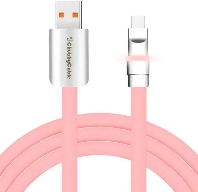 chubbycable Neon Chubby - Fast Charge Cable with Smart Light RGB Color Gradual Light Up LED USB Charging Cable, Pink, USB-A to Type-C, 6.6 FT