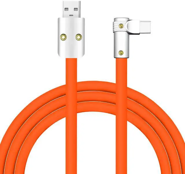 chubbycable FlexElbow Pro - 90 Degree Design 240W Fast Charge Cable Ultra-Thick Silicone Right Angle USB C Cable Phone Tablets Charging Cord, Orange, USB-A to Type-C, 16.4FT