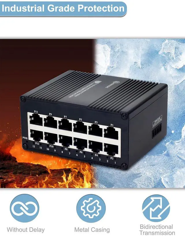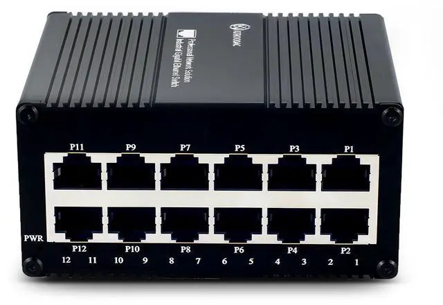 The industrial mini network switch includes 12 Gigabit RJ45 ports, with both IEEE 802.3 x traffic optimization and IEEE 802.3 az energy-saving functions,